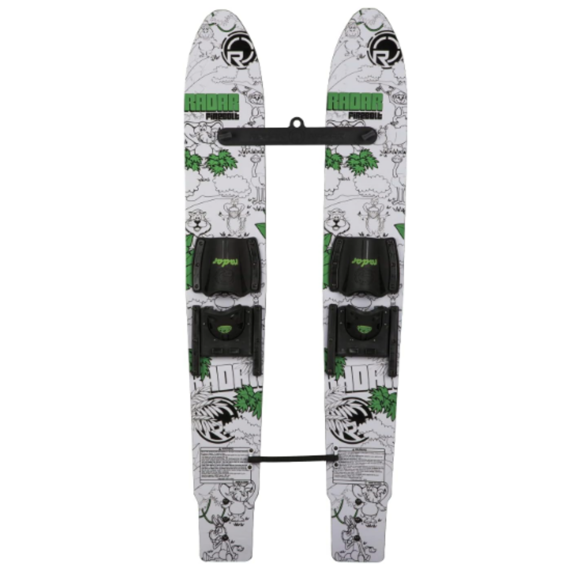The Firebolts are a scaled version of the X-Calibers, taking advantage of everything we expect from the skis designed for big kids behind the boat. A detachable stabilizer bar helps maintain proper ski spacing, improving balance and control while learning. Adjustable horseshoe bindings and a specially designed training rope with two handles (one for the child and the other for the boat) complete the set.